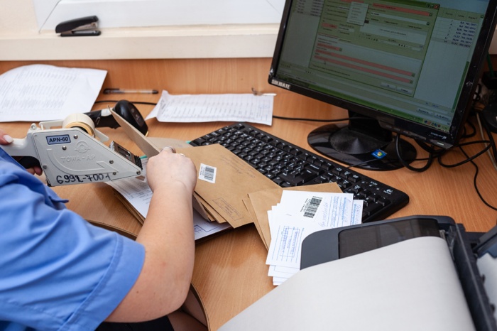 Parcels marked "Pr", "DSP", "K", "Sl" may be packed in cardboard boxes. In this case, the seams of the cardboard box must be sealed with stickers bearing the sender's stamp imprint in a way that prevents access to the contents. Transparent adhesive tape is applied over the stickers.