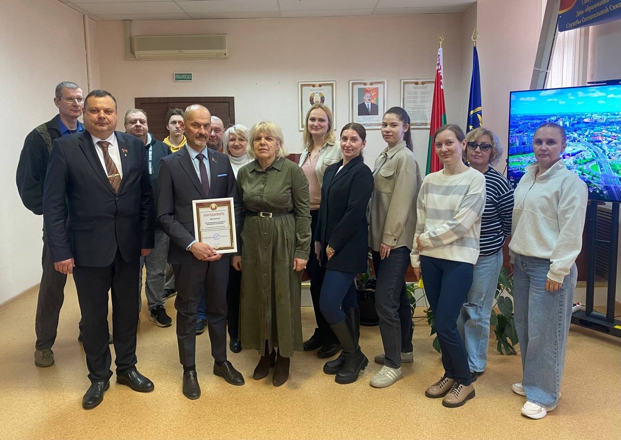 Сегодня директор государственного учреждения образования "Средняя школа N 36 имени Гуляма Якубова" Королик Светлана Иосифовна посетила РУП "Специальная связь" и выразила слова благодарности за многолетнее и плодотворное сотрудничество всем работникам предприятия и вручила благодарность директору Яну Малевичу.